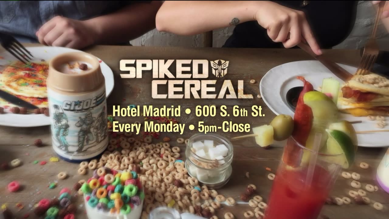 Spiked Cereal is a P.M. brunch bar concept brought to you by beverage director Daniel Beres and culinary director Matthew Kerley of StandEatDrink Hospitality. Inspired by 80's & 90s nostalgia of food and beverage, Spiked Cereal serves up brunch for dinner every Monday night at Hotel Madrid.