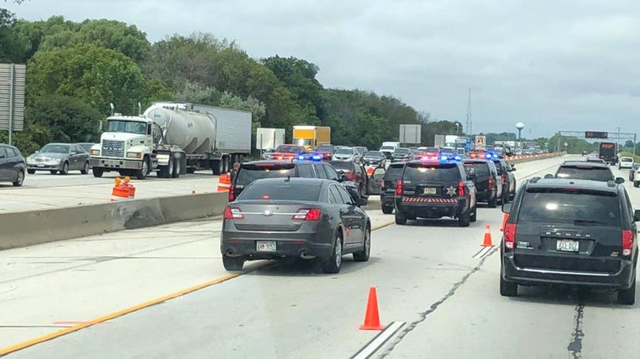 According to the Waukesha County Sheriff's Department, a red GMC SUV struck the median wall near Calhoun Road around 10 a.m. on Tuesday, Aug. 7.