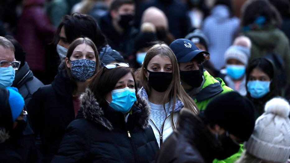 People wearing protective masks walk in Midtown on December 27, 2020 in New York City. . (Photo by John Lamparski/Getty Images)