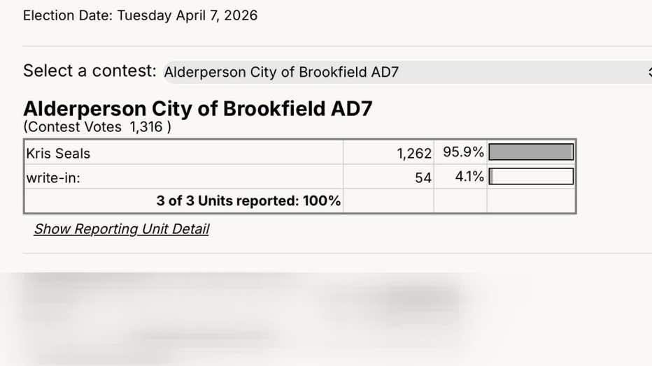 2026 spring election results for Brookfield's District 7 alderperson