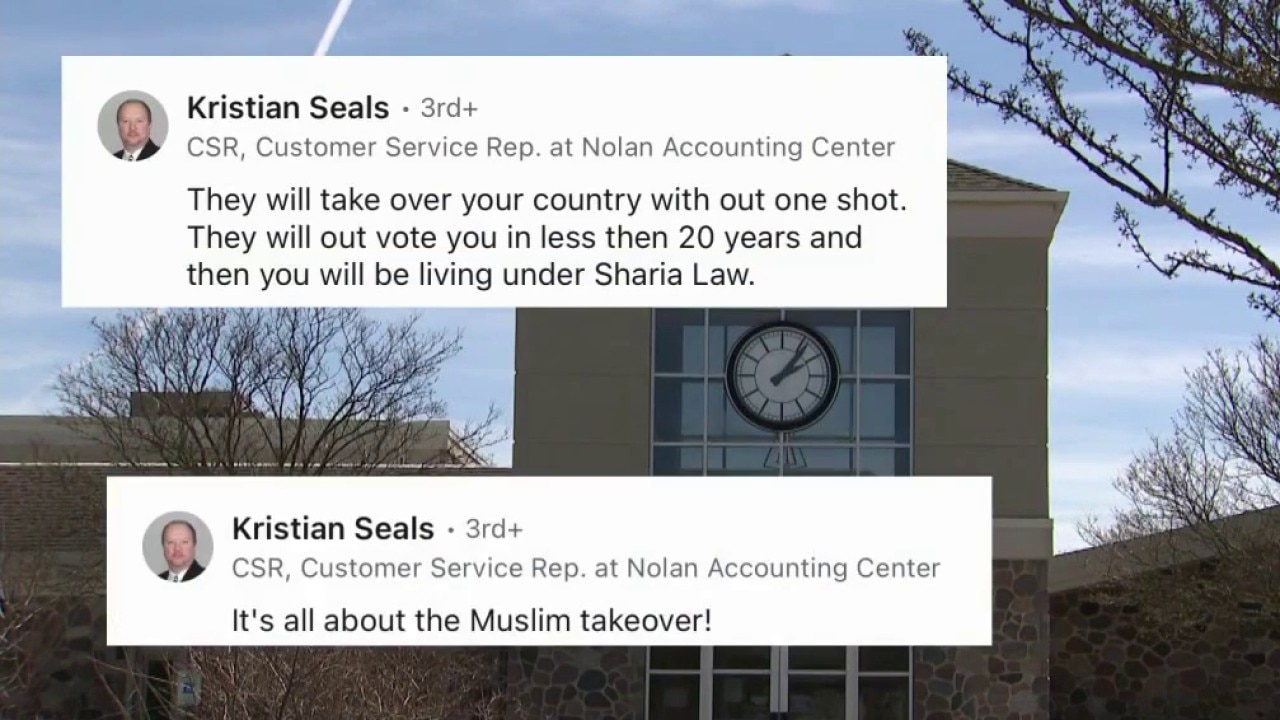 Nolan Accounting Center, Seals' employer, said via email: "I was not aware of these posts and have not had a chance to look into this further. Kris does not speak for our firm or myself."
