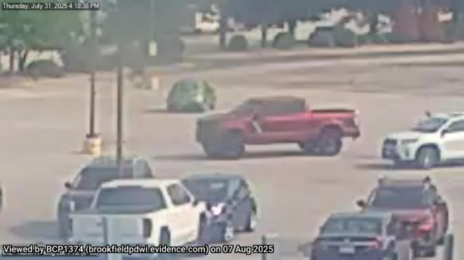Police said the suspect was last seen leaving the parking lot in a red pickup truck with no license plates.
