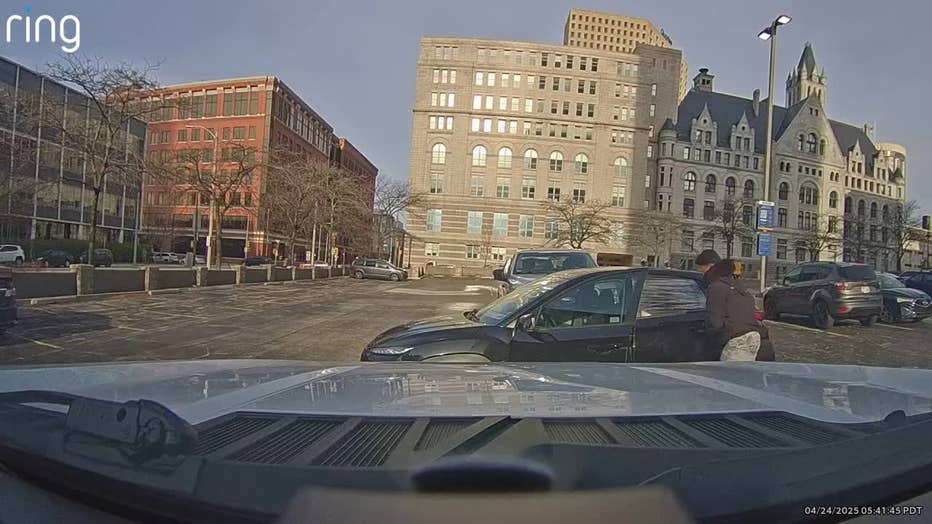 A camera captured the moment a man is seen breaking into a car in a parking lot at Van Buren and Michigan in downtown Milwaukee. It happened Thursday morning, April 24.