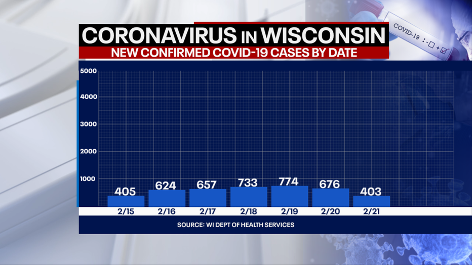 MADISON, Wis. - The number of positive cases of COVID-19 in Wisconsin rose by 403 Sunday, Feb. 21, according to the Wisconsin Department of Health Services, for a total of 559,575.
