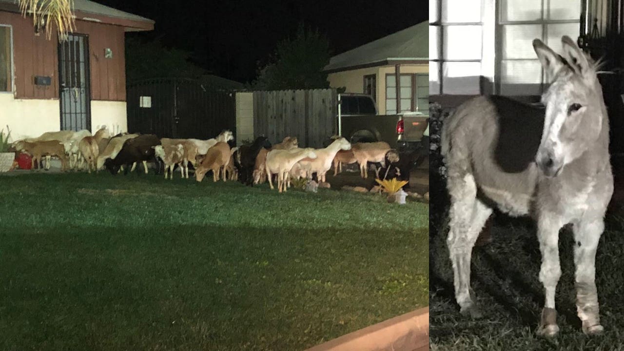 Donkey leads escaped herd of goats and sheep through California neighborhood
