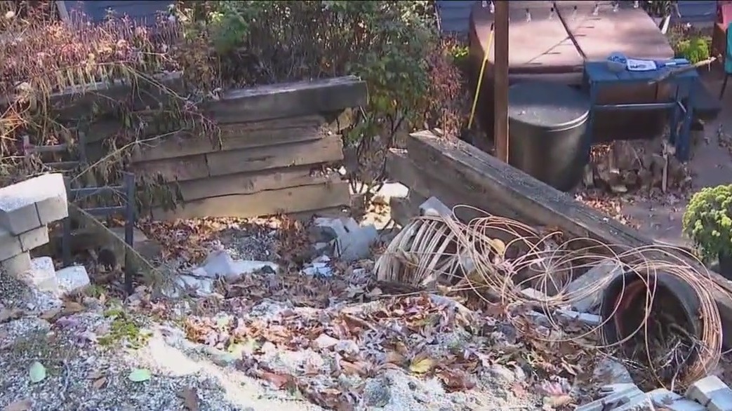 She walked through the damage, pointing out where the storm buckled and split the beams of her retaining wall. She said the rushing water pushed rocks, debris and dirt dangerously close to her home.