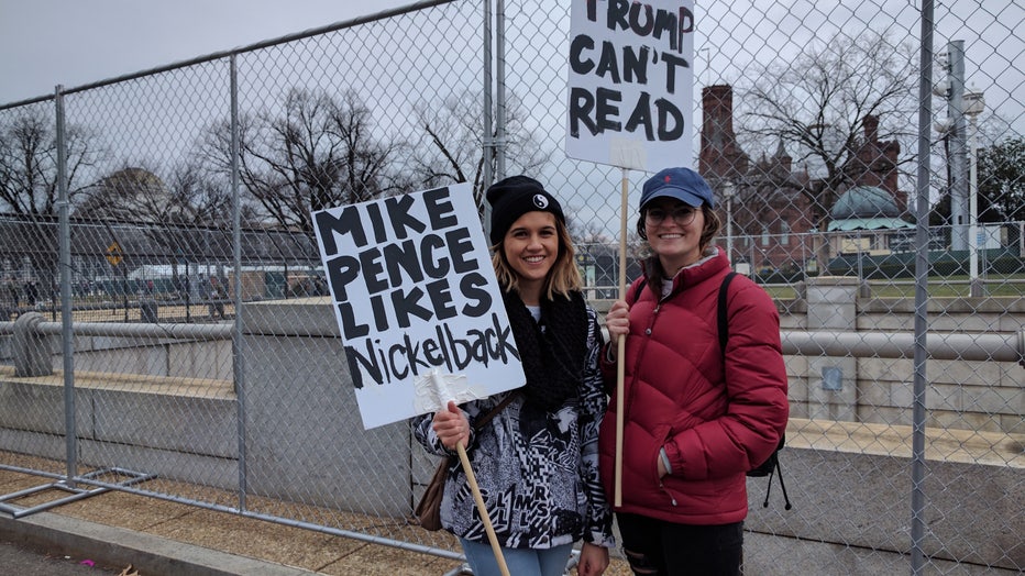 Kyanna McCafferty and her friend hold their signs at the National Mall in Washington, D.C. on January 20, 2017.