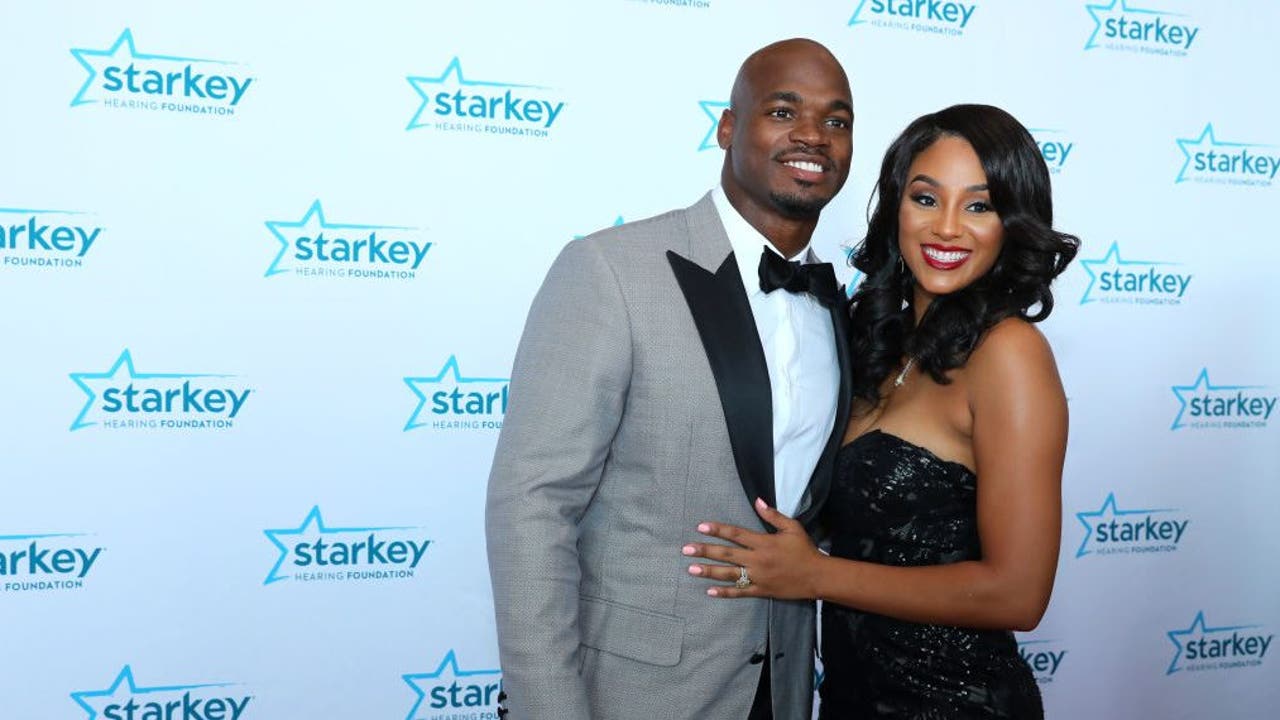 ST PAUL, MN - JULY 16: Adrian Peterson and Ashley Brown walk the red carpet at the 2017 Starkey Hearing Foundation So the World May Hear Awards Gala at the Saint Paul RiverCentre on July 16, 2017 in St. Paul, Minnesota. (Photo by Adam Bettcher/Getty