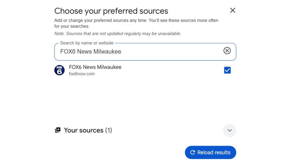 Click ‘reload results’ to save your choice, and you’ll immediately see more articles from FOX6 News Milwaukee in your results.