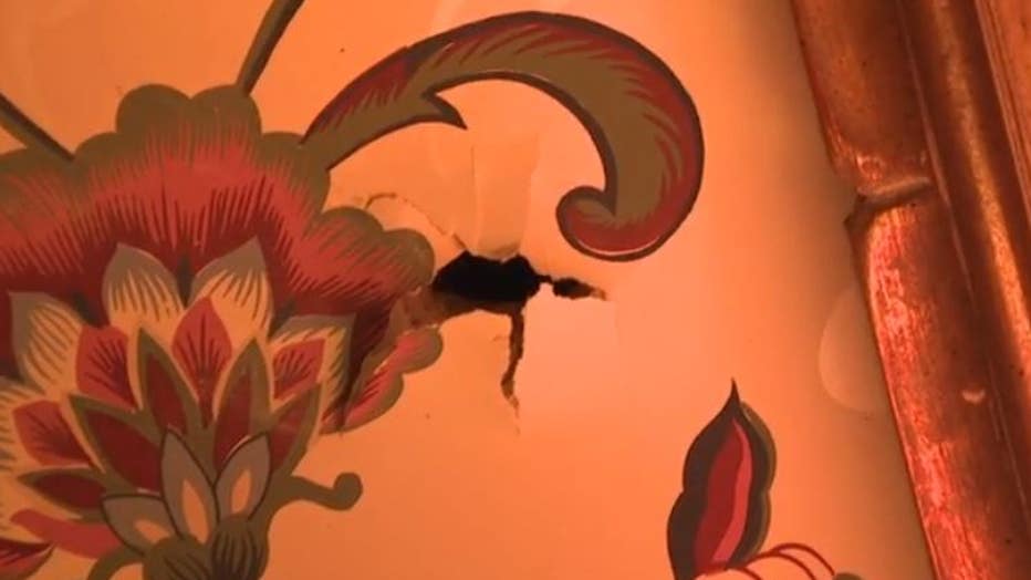 "It went through the picture, of all things, into the wall again and then stopped right here," said Bauman.
