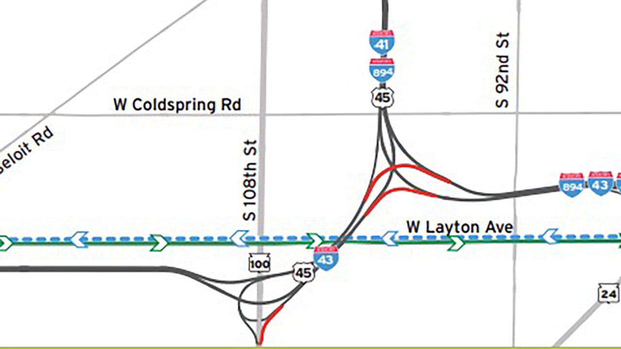 Drivers heading eastbound on I-43 are encouraged to take the I-43 north exit to Layton Avenue at 124th Street and take Layton Avenue to 60th Street, and take the on-ramp at 60th Street to get around the closure.