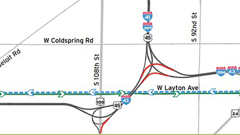 The Wisconsin State Highway 100 entrance ramp to I-43 north is scheduled to close by 9 p.m. as well.