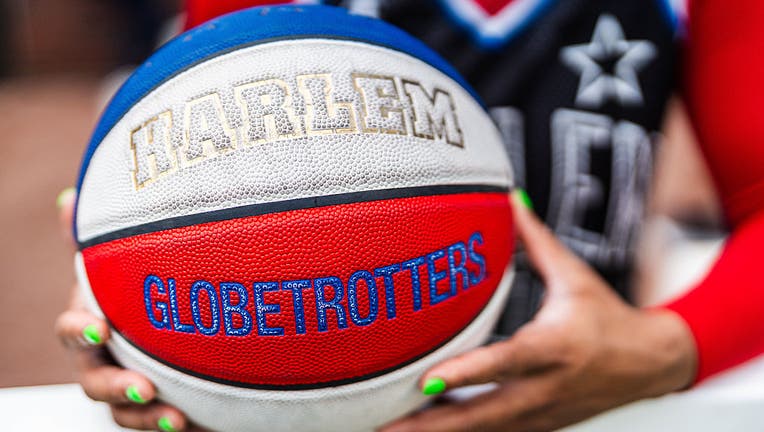 A Harlem Globetrotters basketball (Photo by Matthew Grimes Jr./Atlanta Braves/Getty Images)