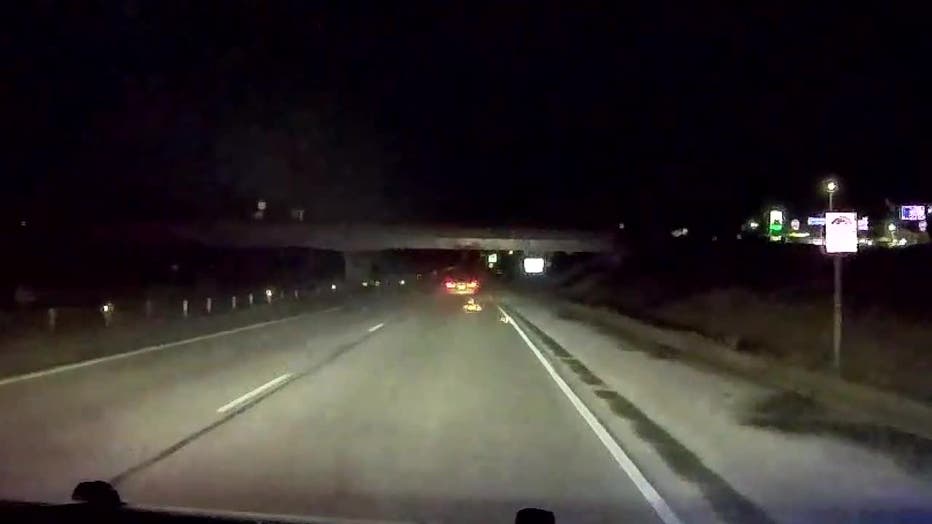 HARTLAND, Wis. - A Hartland police chase ended in a highway standoff. The driver's tire was stripped down to the rim.
