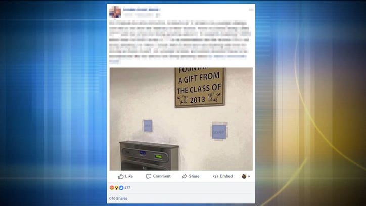 A water fountain pictured in the social media post may be a gift from the class of 2013, but the words above it are reminiscent of a pre-civil rights era. The photo shows two water fountains in one of the school's hallways labeled "white" and "colored."