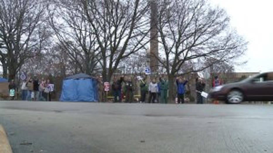 Kohler workers on the picket line Thanksgiving Day
