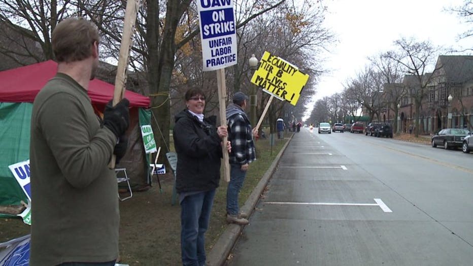 The workers are drawing pay out of the UAW's strike fund, which they said amounts to about $200 a week, while the contract situation remains unresolved.