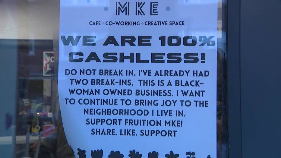 FOX6 News first reported on the break-in at Fruition MKE, located near 27th Street and Wells Street, last week. The burglary happened Monday morning, Jan. 19, when thieves smashed through the front door and stole cash, according to the owner.
