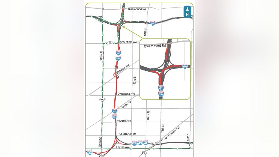 - I-41/I-894 will be closed between Greenfield Avenue and the Hale Interchange.