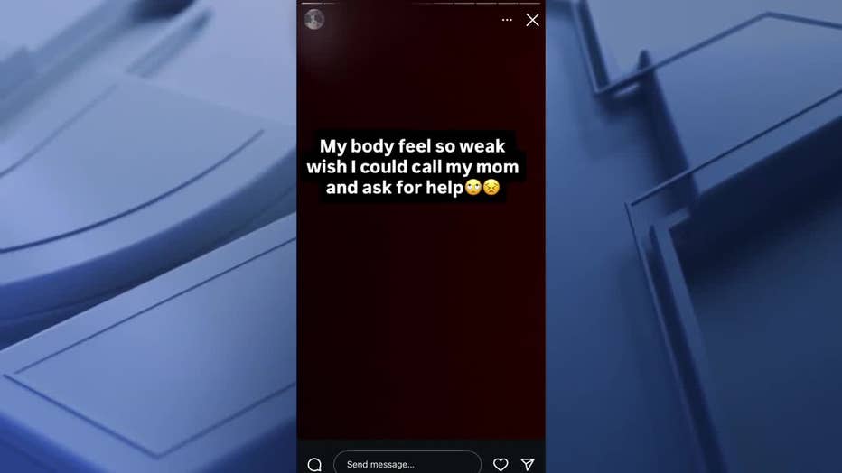 She also shared this screenshot from Icies' Instagram, where she said the man had been following her for a year. It reads "My body feel so weak wish I could call my mom and ask for help."