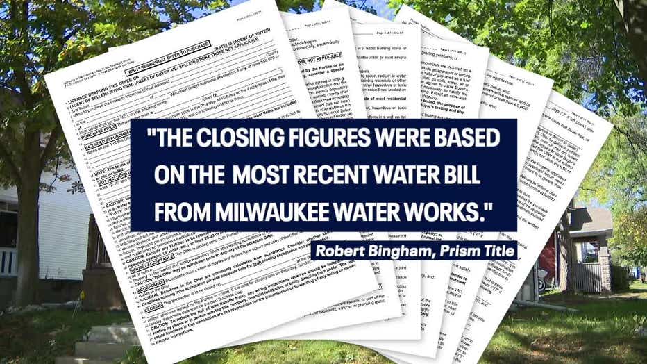 "The closing figures were based on the most recent water bill from Milwaukee Water Works, adding necessary prorations," Bob Bingham of Prism Title wrote in an email to Contact 6.