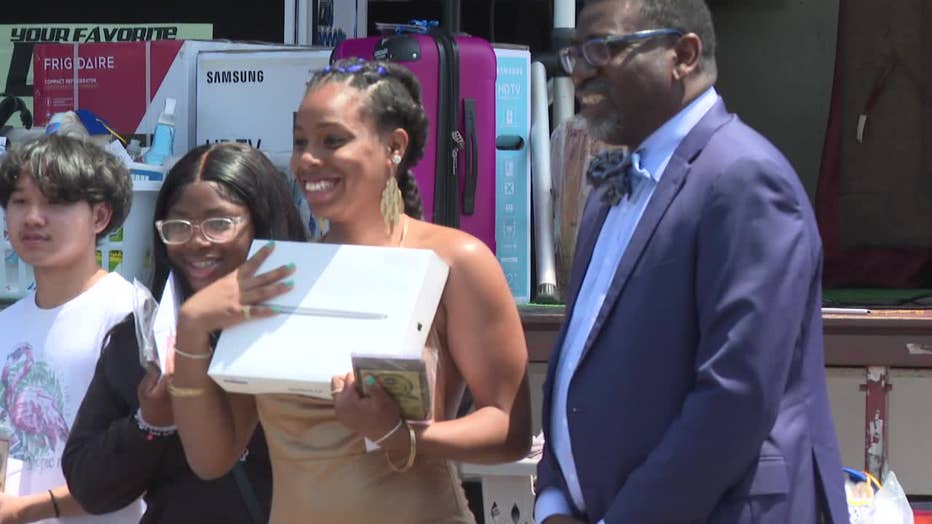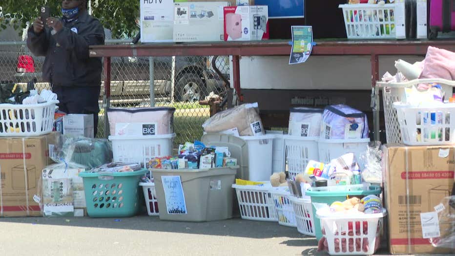 The school district held a raffle for students with TVs, mini-fridges, and other essentials.