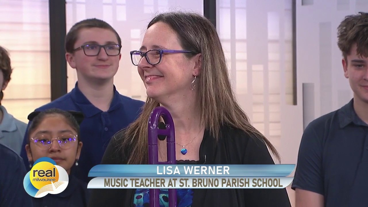 Mrs. Lisa Werner and her Purple Trombone join Real Milwaukee along with students from St. Bruno Parish in Dousman.