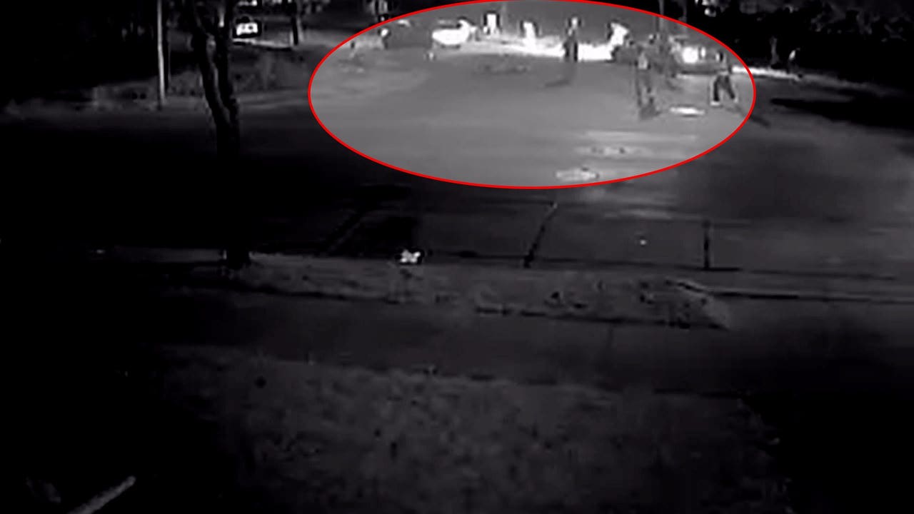 Surveillance video from a home in the area shows a large group of people standing in the park when suddenly, everyone scatters when gunfire erupts.