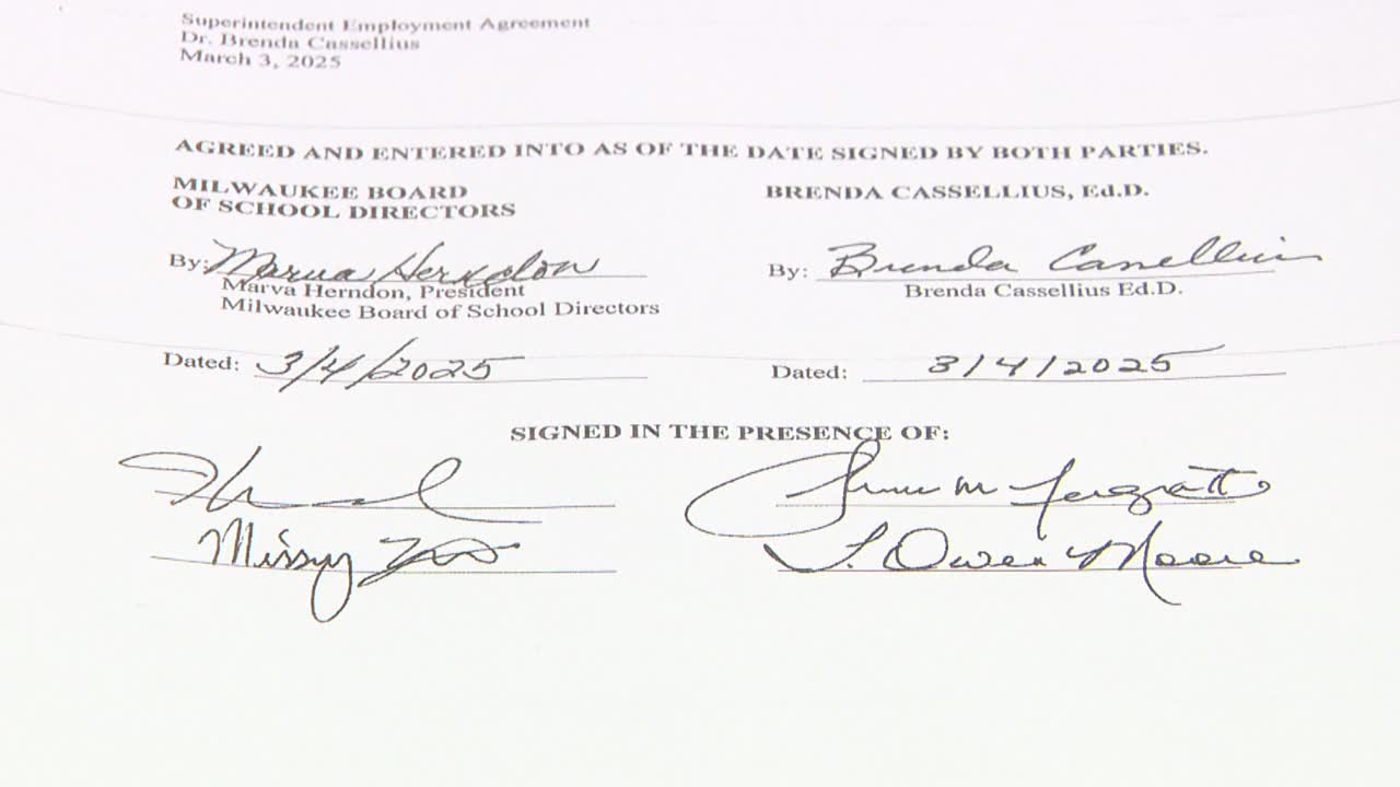 The Milwaukee School Board finalized a contract for its new superintendent, Dr. Brenda Cassellius on Tuesday, March 4. Cassellius' current contract with Milwaukee Public Schools expires in June 2027.