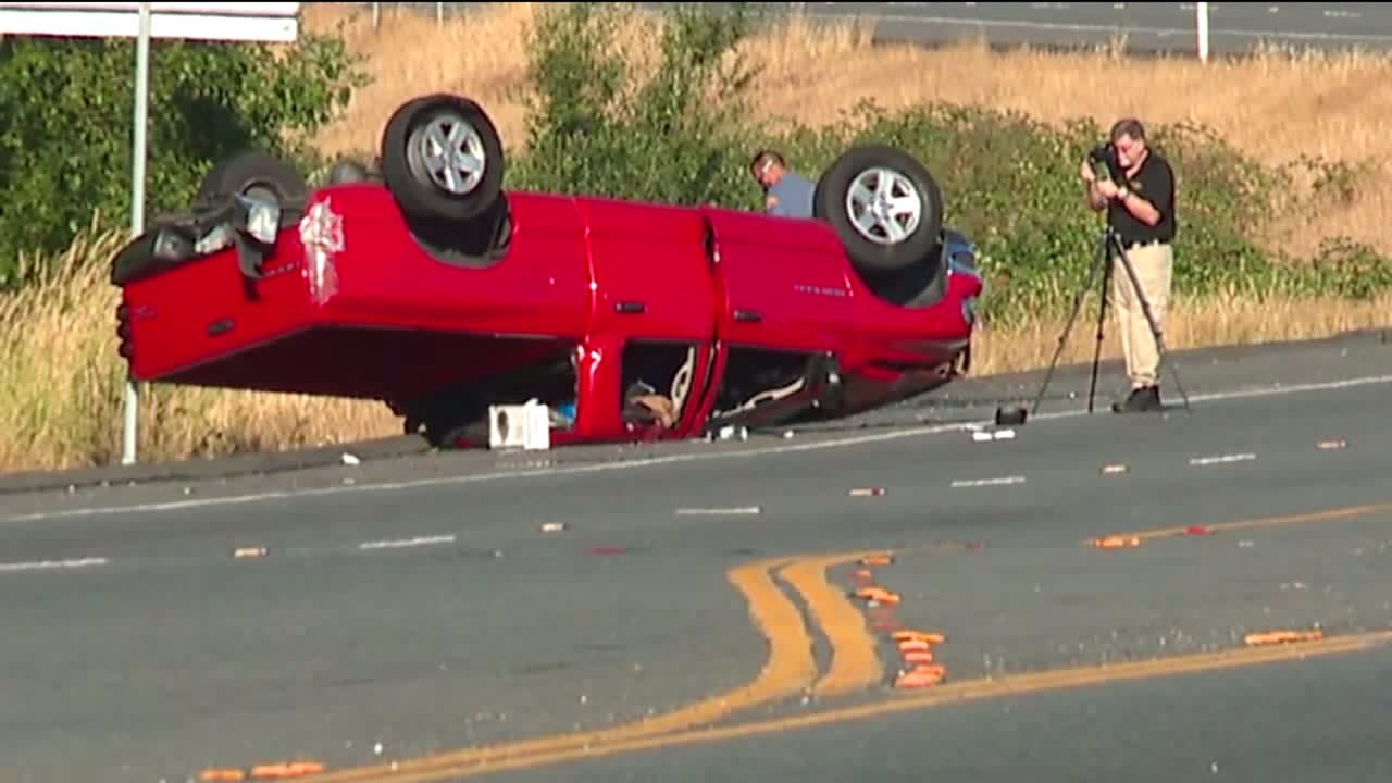 Kent Police said in a news release that officers were pursuing a red truck seen leaving a parking lot where gunshots were reported just before 2 a.m.