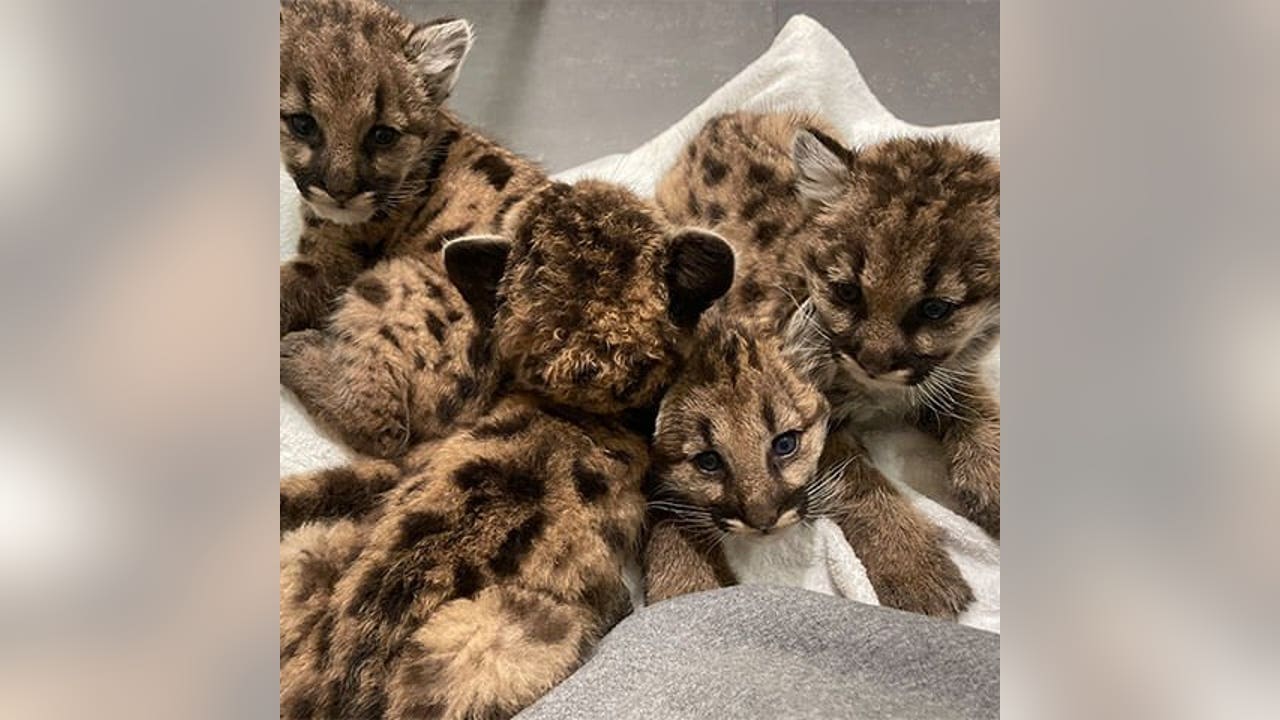 Zoo officials said the female puma gave birth to the kittens — three males and one female — in the backyard of a Washington resident. When U.S. Fish and Wildlife officials tried to relocate the family, the mother ended up abandoning her young. Officials said after two days of the mother not returning, they decided to intervene and care for the kittens.