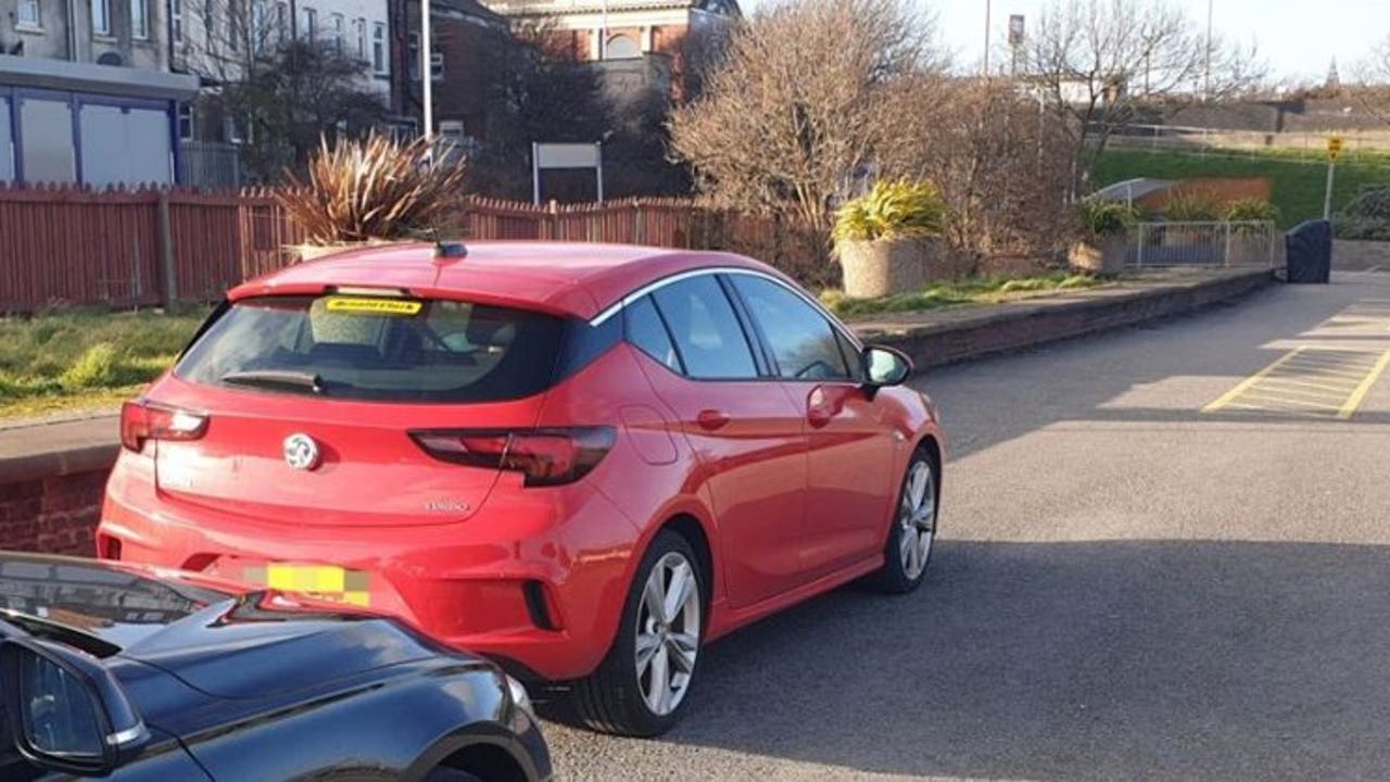 Lancashire Road police shared a photo of the traffic stop after finding the 11-year-old behind the wheel of a red hatchback in Blackpool, a seaside town in North West England.