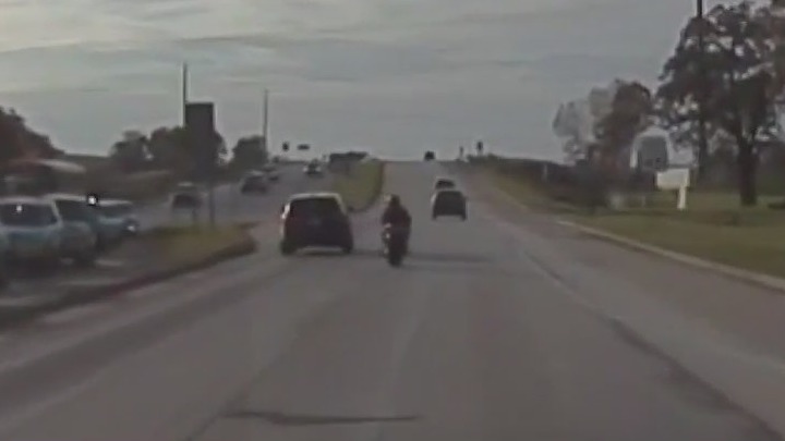 The squad was able to catch up to the motorcyclist as he approached State Highway 165. When the biker turned west on State Highway 165, the officer activated his lights and siren again in an attempt to initiate a traffic stop. The police report says the motorcyclist "initially accelerated away at a high rate of speed." The officer noted he was traveling 70 mph in a 45 mph zone – and that the motorcyclist "was not stopping as it abruptly changed lanes," the report says.