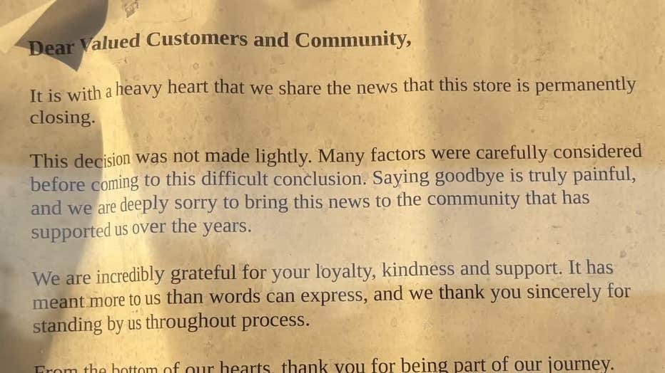 Customers were greeted by a sign from management stating, "This decision was not made lightly. Many factors were carefully considered before coming to this difficult decision."
