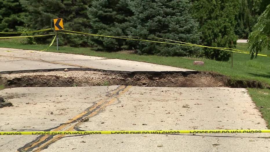 So far, Milwaukee County is estimating $23 million in damage to public infrastructure, such as one road in Brown Deer that turned into a cliff and crater.