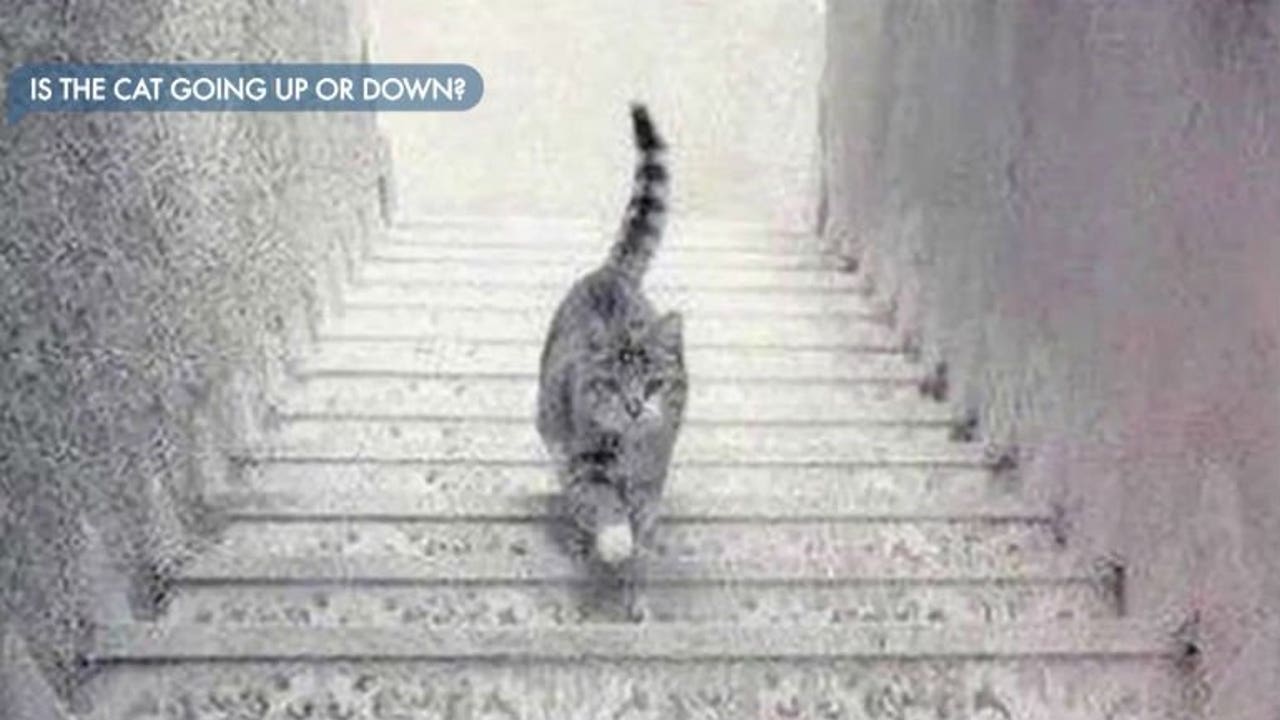 The question: Is this cat going up the stairs or down the stairs?