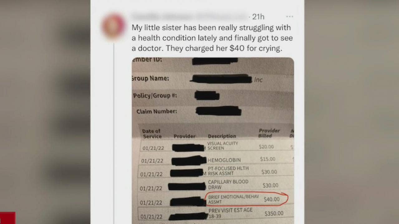Unexplained medical charges happen more often than you'd think, according to patient advocates. One recent tweet about a questionable bill is going viral after a user on Twitter says her sister was charged $40 for crying.