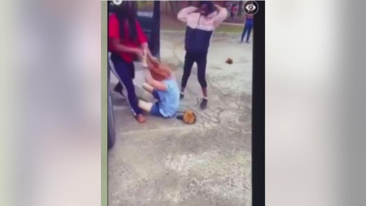 Video still of the fight between two women and a US postal carrier.