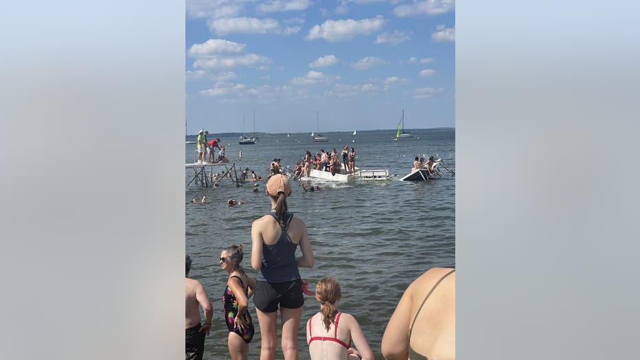 A University of Wisconsin Memorial Union Terrace pier collapse sent students into Lake Mendota on Labor Day. (Courtesy: Julia Beck)