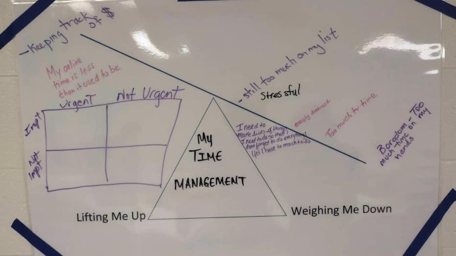 "Keep looking at your goal, what you want to achieve," described Laura Lindsey when asked by FOX6 News reporter Bret Lemoine about how she stays on track. Lindsey finished Getting Ahead last year. Everyone in the program has to create a poster expressing in words and pictures their financial status and goals. "In the beginning," Lindsey said gesturing her hand over her head, "I just showed water going like this representing debt."