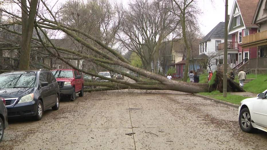 Tree down on Booth Street in Milwaukee's Riverwest neighborhood