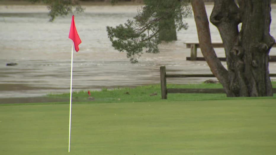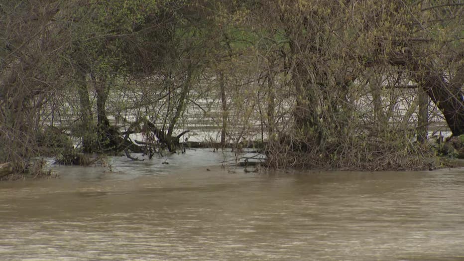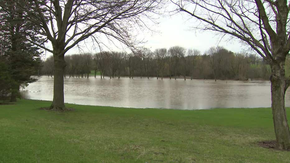 A portion of Currie Park Golf Course in Wauwatosa was underwater, as the Menomonee River swelled. Downstream, at Hart Park, the USGS water gauge showed the river rose roughly five feet in 12 hours.