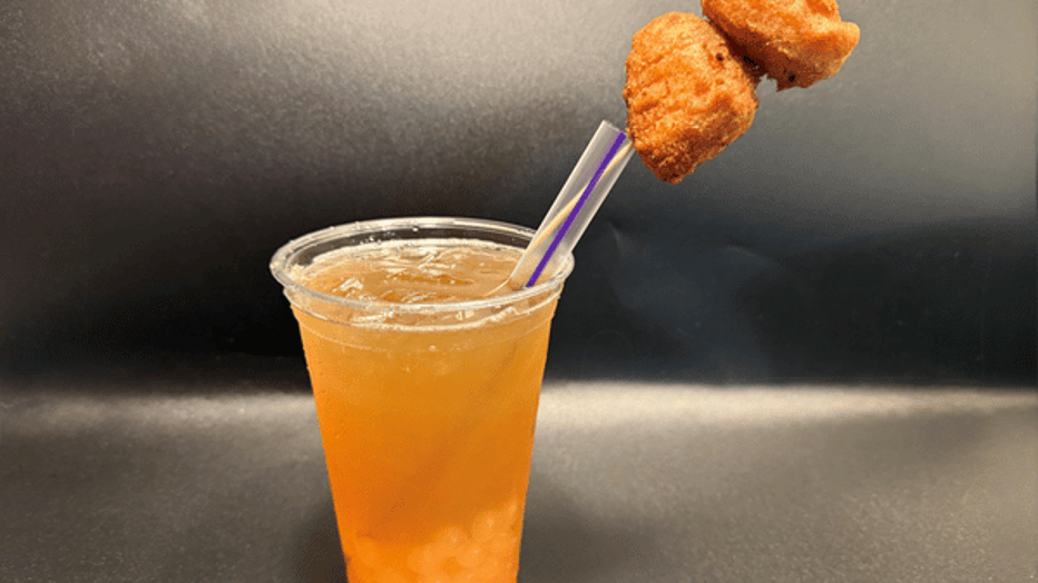 Sip on fresh-squeezed lemonade, sweetened with Mike’s Hot Honey and garnished with two sweet hot honey battered chicken nuggets. Did we mention that the iced Hot Honey Chicken Lemonade is served with honey popping juice pearls, too? The mix of hot, sweet and cold has never tasted better!