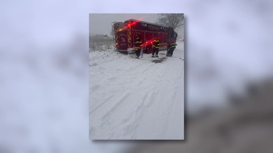Village of Vernon Fire Department Assistant Chief Patrick Hays said one fire truck became stuck three times Saturday while responding to a minor crash on Hillview Drive.