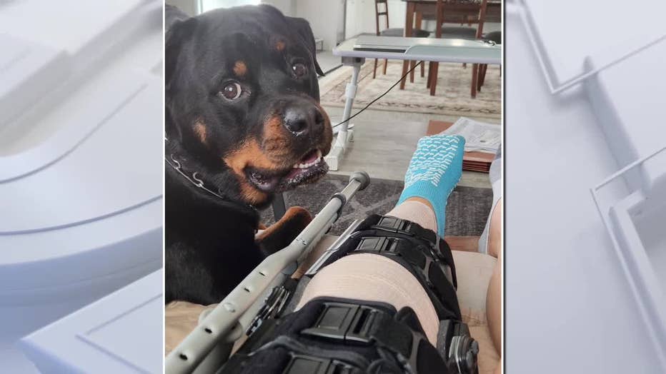 Back in July, a friend's rottweiler rammed into Staral's leg, breaking her tibia just below the knee joint.