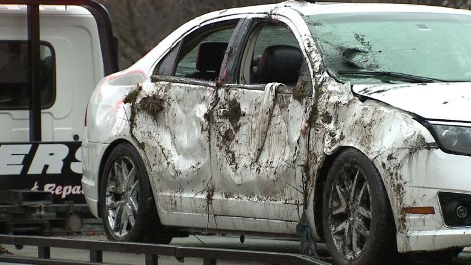 Car in Fox River, Waukesha