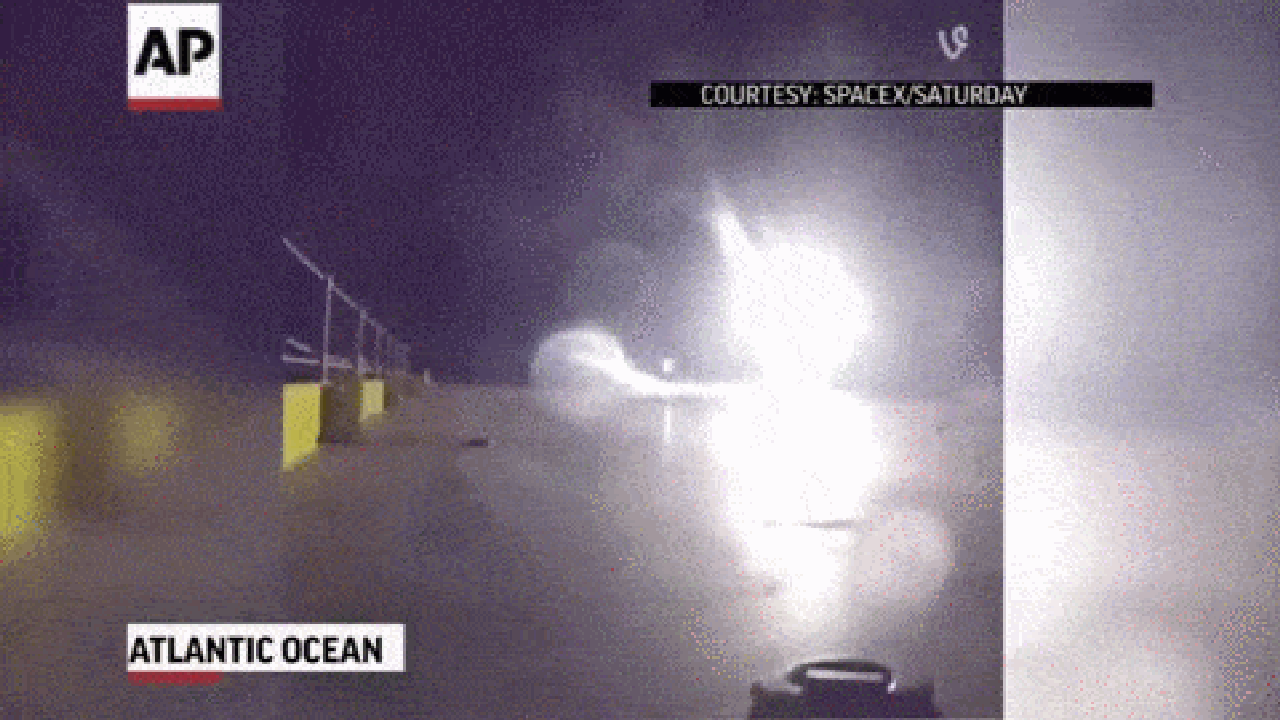 HAWTHORNE, Calif. (AP) — SpaceX has released dramatic footage of its booster rocket trying to land on a floating barge in the Atlantic after a launch — an unprecedented attempt that ended in a fiery explosion.