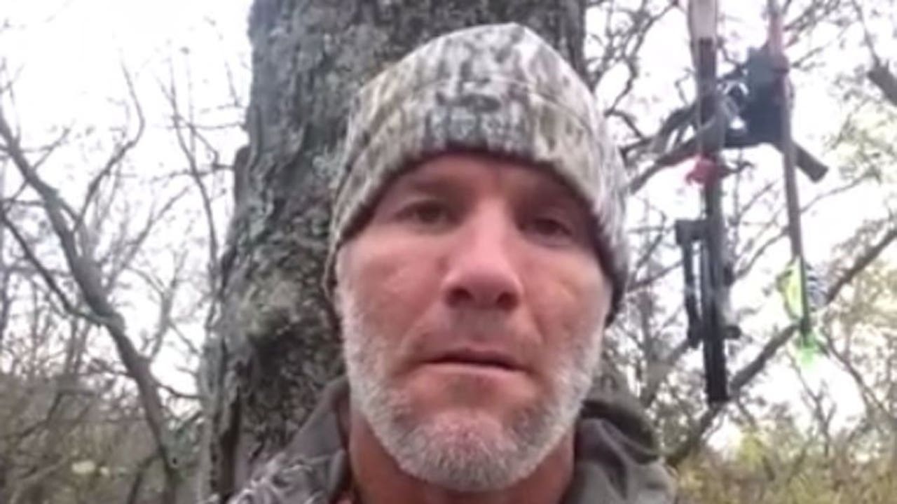 From a tree stand, Brett Favre congratulates Peyton Manning on passing record