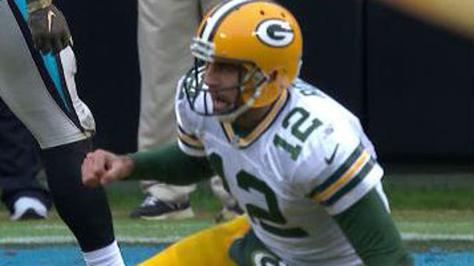 Packers QB Aaron Rodgers at end of game vs. Carolina Panthers
