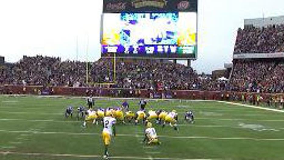 At the two-minute warning in the first half from TCF Bank Stadium, the Packers led the Vikings 9-6.